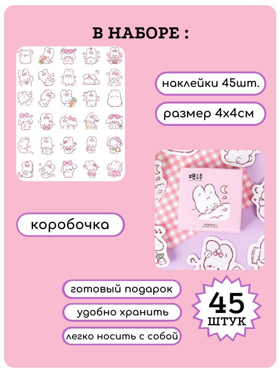 Наклейки в коробочке зайчики поднимут настроение каждому. Наклейки в подарок дочке или сестре или подруге с 8 Марта. Подарок другу брату с 23 февраля. Подарок на 14 февраля и День всех влюбленных. Детские наклейки. Набор наклеек - готовый подарок ребёнку. Наклейки с зайчиками -это способ украсить свою комнату,гаджет,карту,выразить свою индивидуальность.Эстетичные стикеры для ежедневников добавят изюминки в ваш образ.Прикольные арт наклейки легко наклеиваются на ноутбук или компьютер ПК,кастомизация ПК,ps4,ps5,чехол телефона. Многие любят наклеивать наклейки на гитару, пианино.Стоит купить эти маленькие дешевые наклейки и оценить их по достоинству. Наклейки на стены и обои, наклейки на велосипед, стикеры на самокат, наклейки на чемодан, наклейки на бутылку для воды, наклейки на копилку, стикеры наклейки на горшок для растений, стикеры на банковскую карту, наклейки на авто и машину-это возможности применения этих наклеек. Канцтовары с зайчиками для детей и могут украсить скетчбук, блокнот, ежедневник, фотоальбом, тетрадь, альбом, конверт украшение для упаковки подарка.Каждая наклейка уже аккуратно вырезана. Наклейки стикерпак на чемодан, планер,телефон,карте помогут выделиться. Стикеры -прикольные вещи для подростков. Супернаклейки можно использовать для творчества в детском саду,как подарочные наборы для девочек, наборы для мальчиков.Когда стикер надоест,его с легкостью можно заменить на другой стик. Прикольные смешные наклейки с котиками, кисками, наклейки с животными, наклейки с зайчиками созданы для поднятия настроения себе и друзьям. Наклейки зайчики можно использовать как поощрительные наклейки для школьников. Прикольные картинки не оставят равнодушными никого!